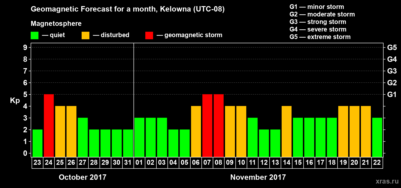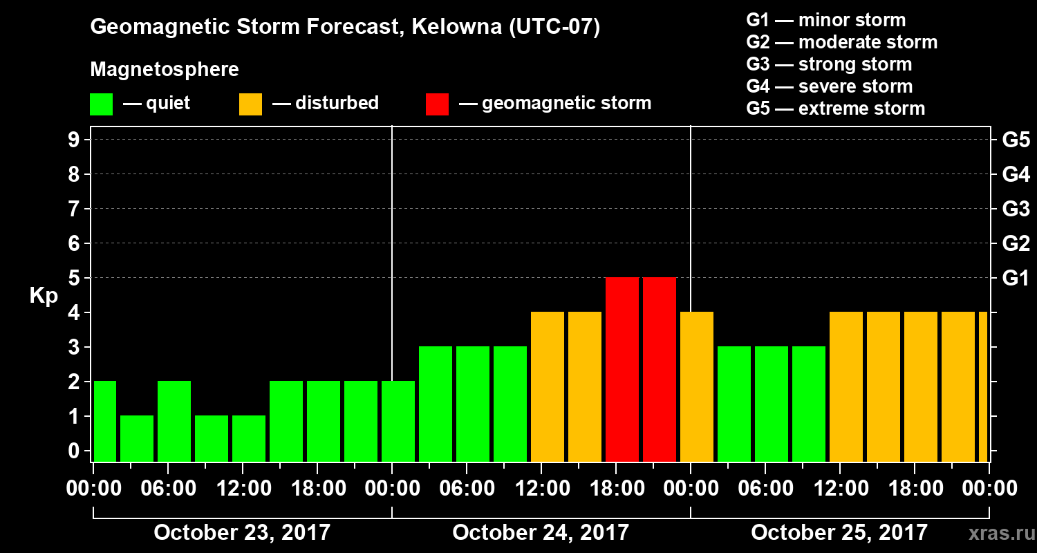 Geomagnetic storm forecast in Kelowna for Oct 23, 2017
