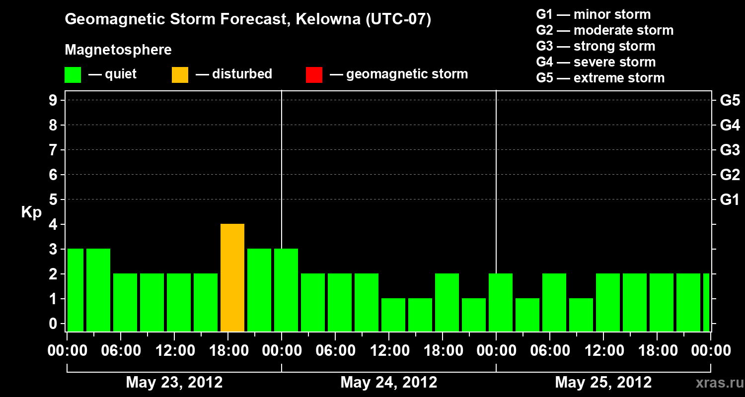 Geomagnetic storm forecast in Kelowna for May 23, 2012