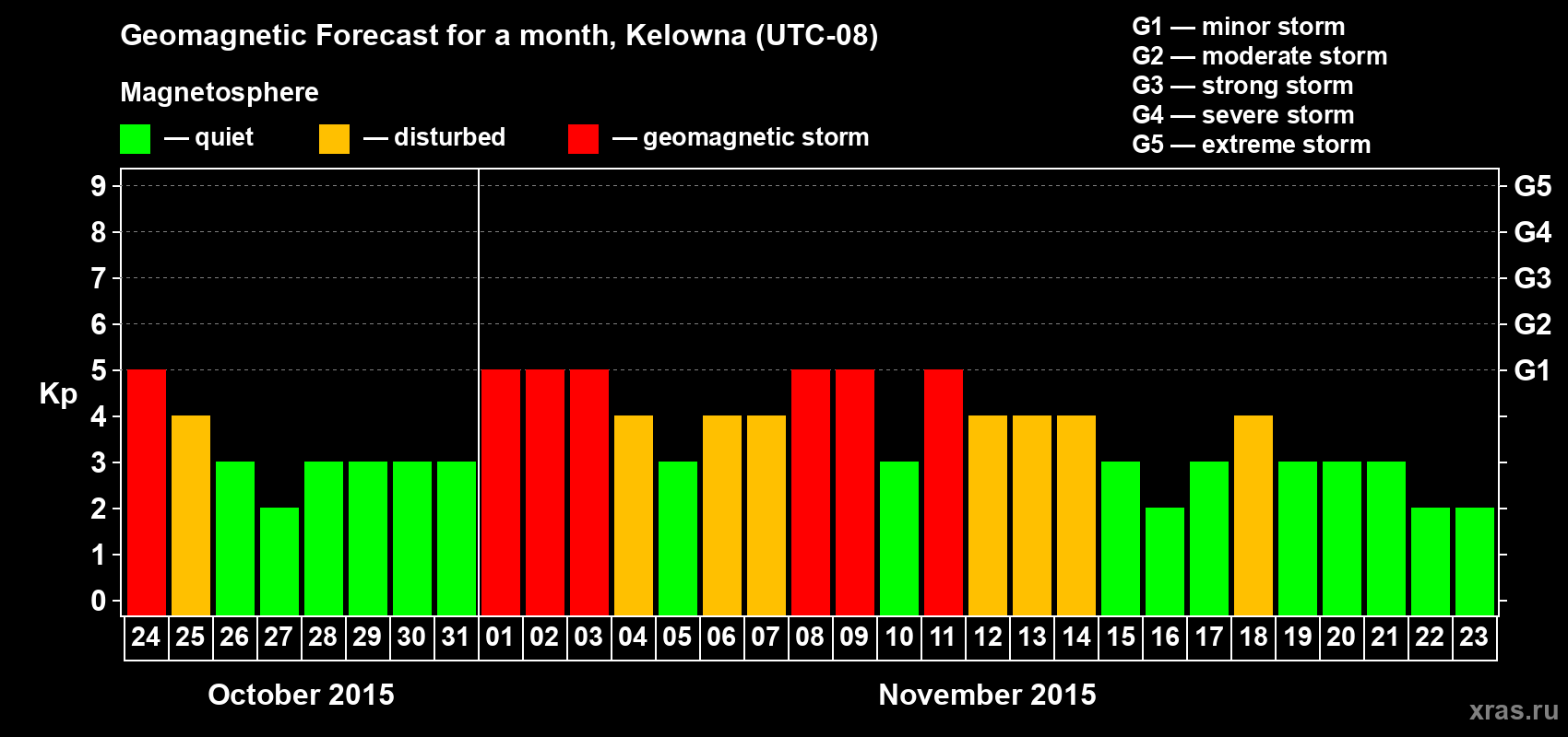 Geomagnetic storm forecast in Kelowna for Oct 24, 2015