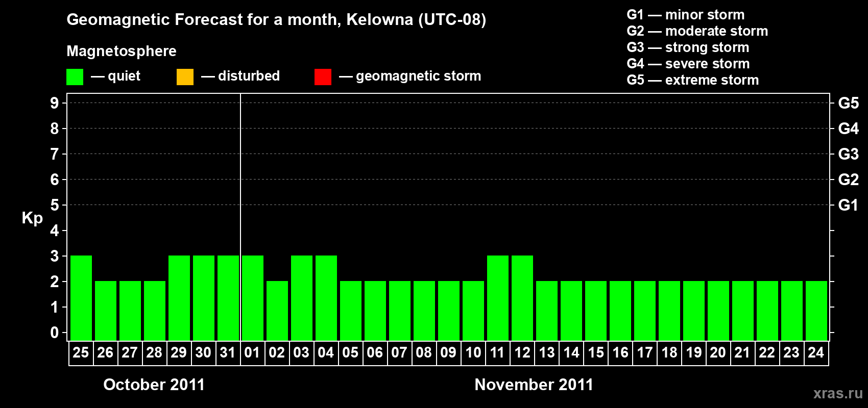 Geomagnetic storm forecast in Kelowna for Oct 25, 2011