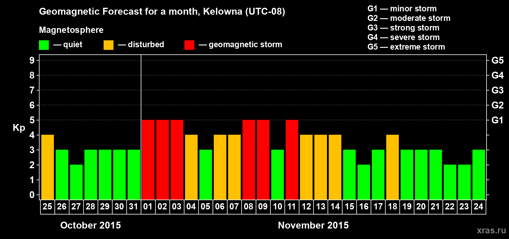 Geomagnetic storm forecast in Kelowna for Oct 25, 2015