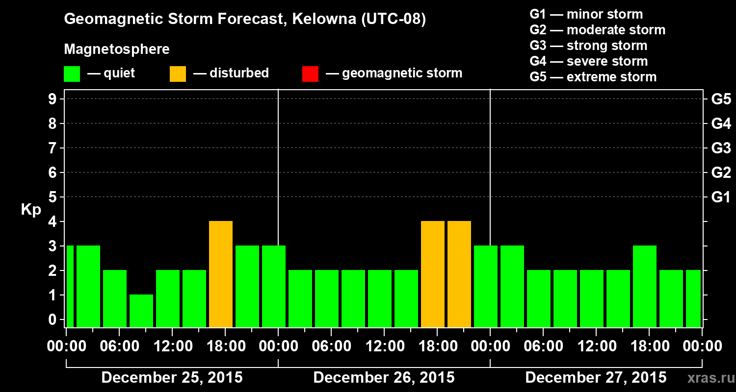 Geomagnetic storm forecast in Kelowna for Dec 25, 2015