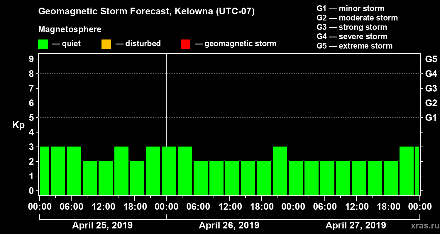 Geomagnetic storm forecast in Kelowna for Apr 25, 2019
