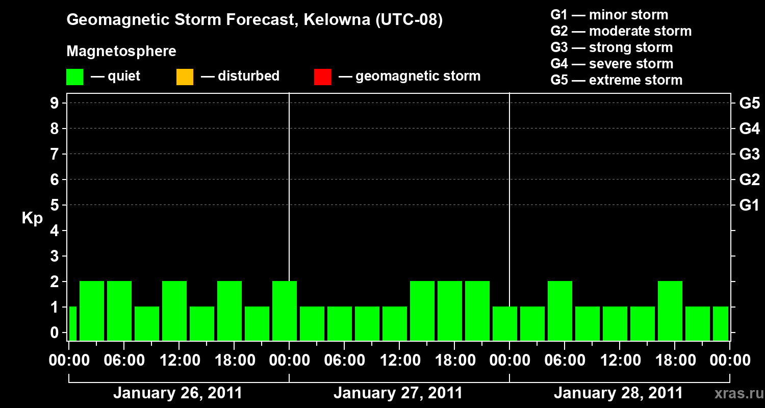 Geomagnetic storm forecast in Kelowna for Jan 26, 2011