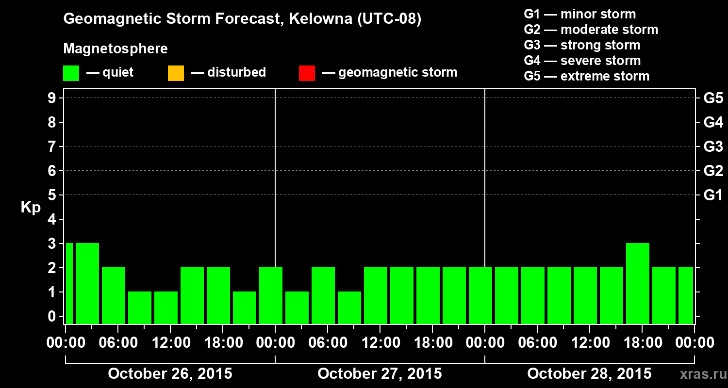 Geomagnetic storm forecast in Kelowna for Oct 26, 2015