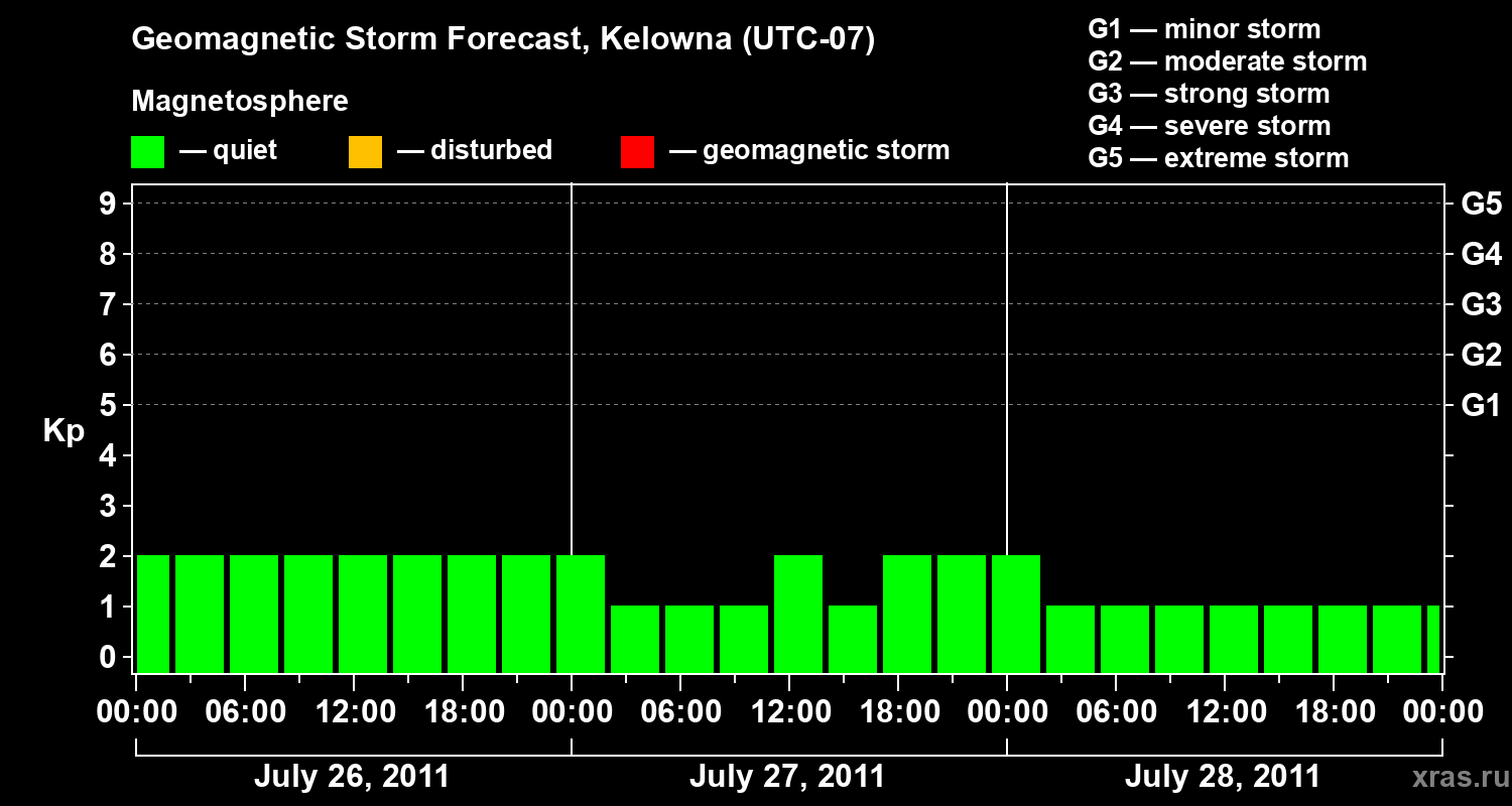 Geomagnetic storm forecast in Kelowna for Jul 26, 2011