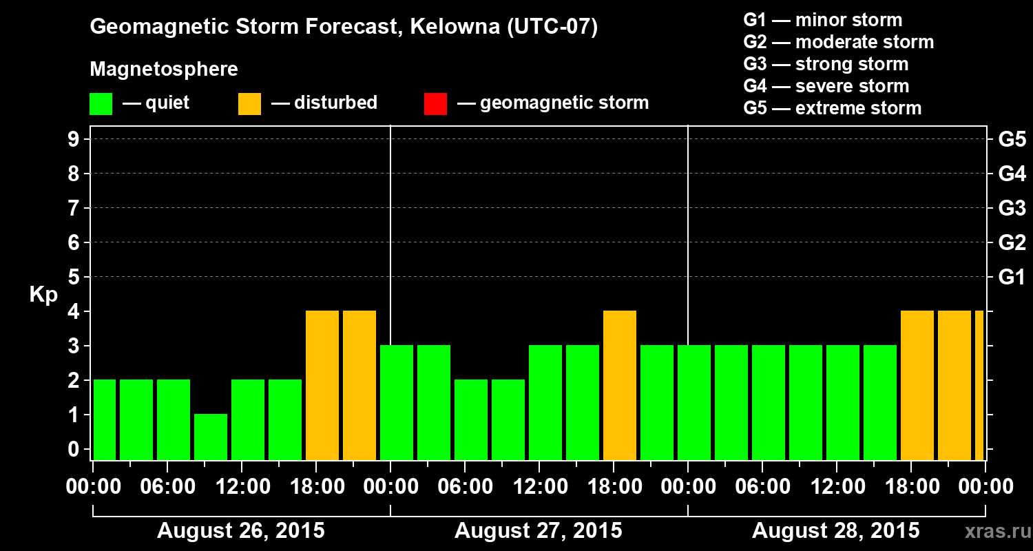 Geomagnetic storm forecast in Kelowna for Aug 26, 2015