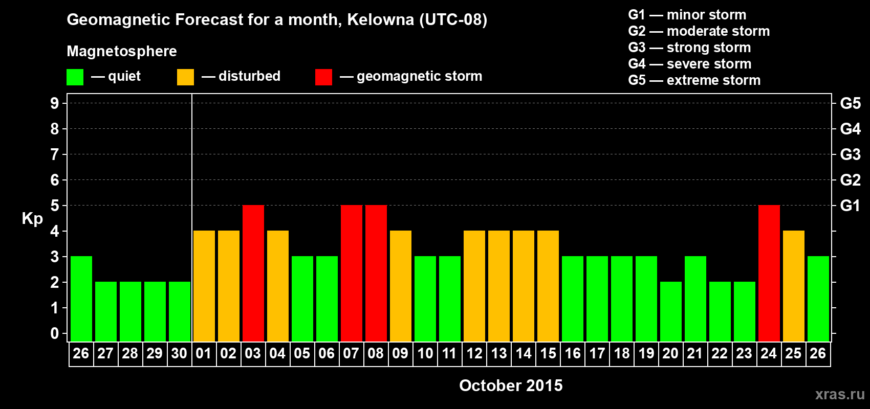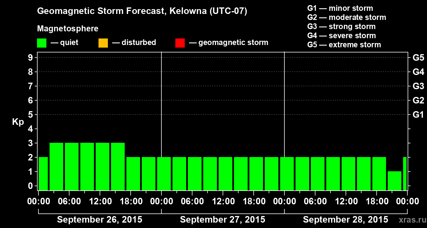 Geomagnetic storm forecast in Kelowna for Sep 26, 2015