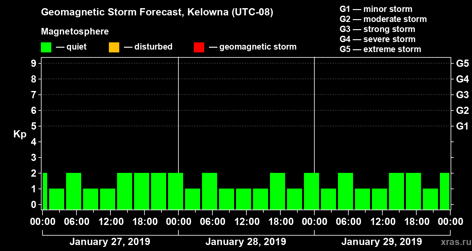 Geomagnetic storm forecast in Kelowna for Jan 27, 2019