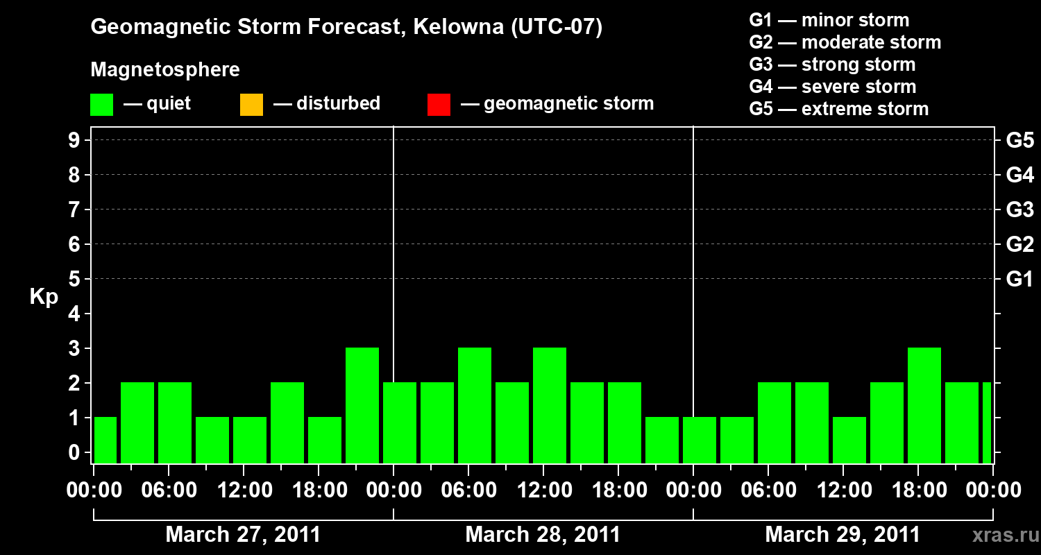 Geomagnetic storm forecast in Kelowna for Mar 27, 2011