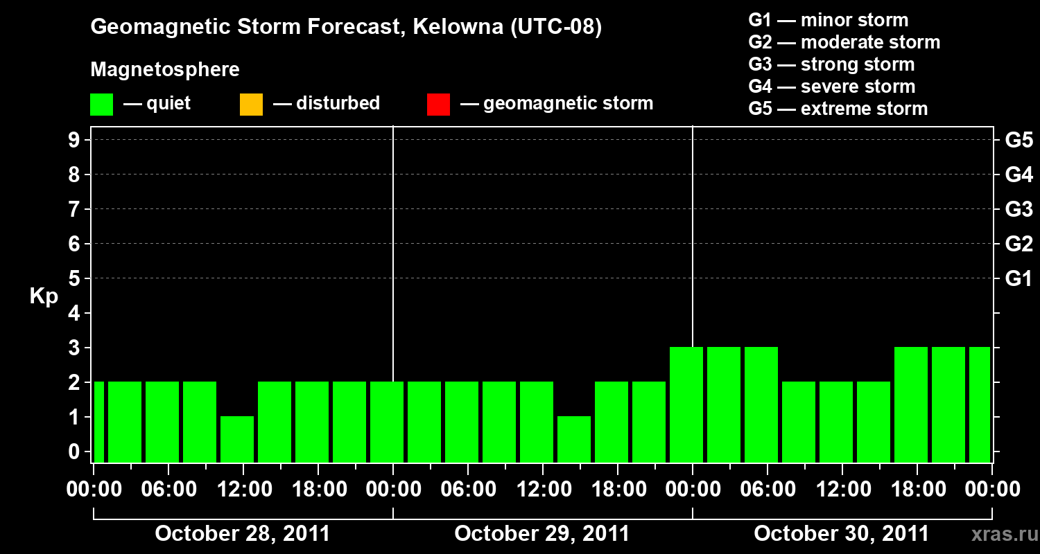Geomagnetic storm forecast in Kelowna for Oct 28, 2011