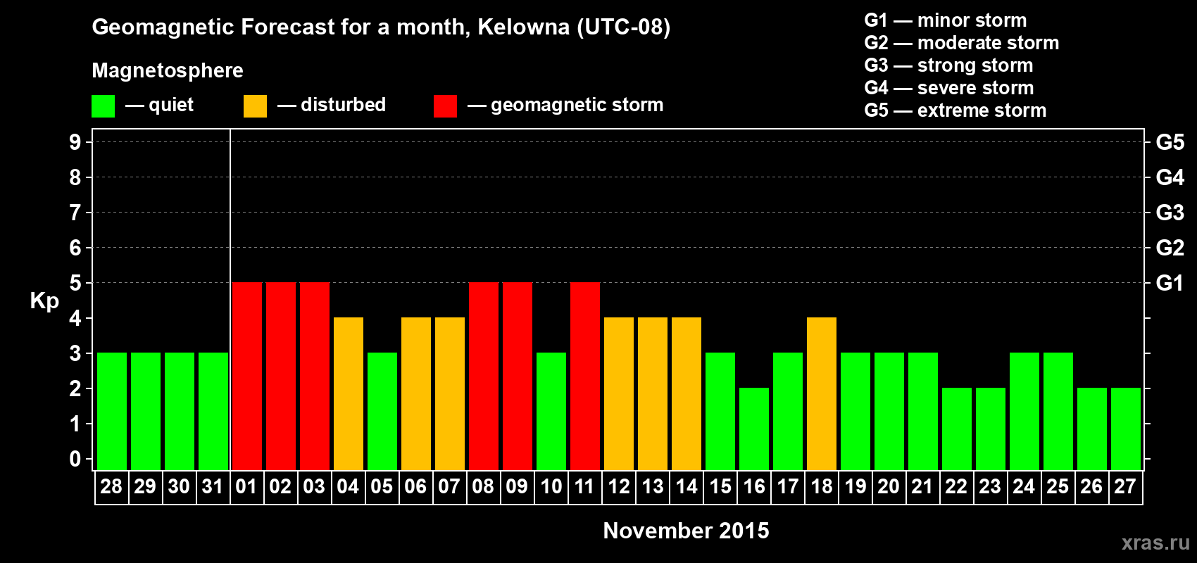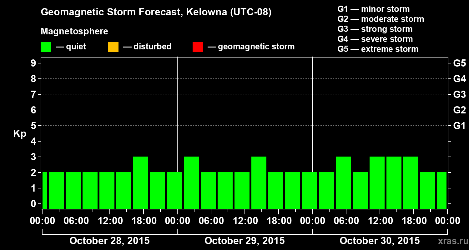 Geomagnetic storm forecast in Kelowna for Oct 28, 2015