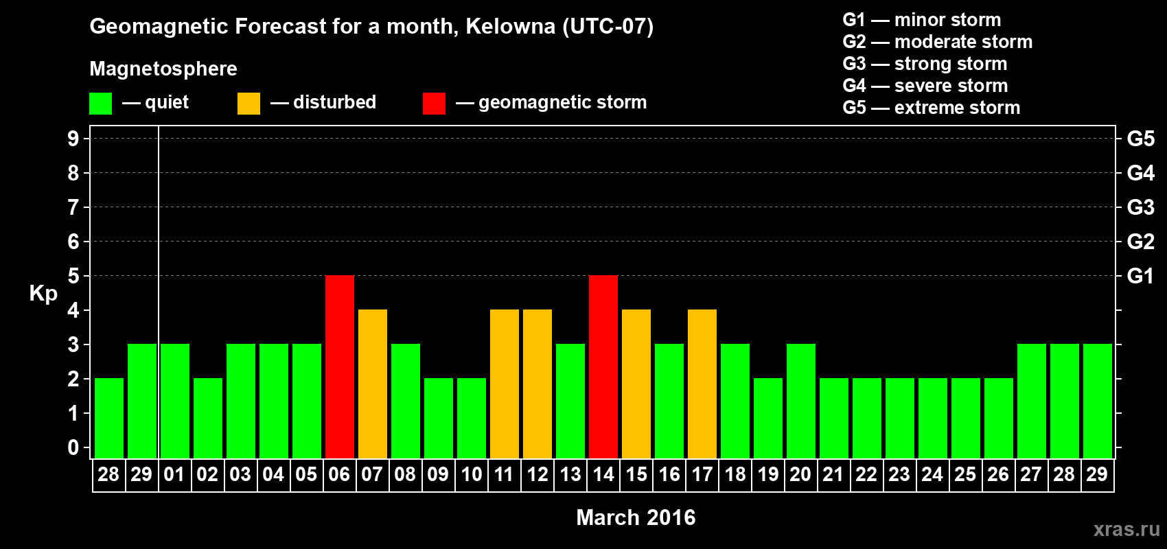 Geomagnetic storm forecast in Kelowna for Feb 28, 2016