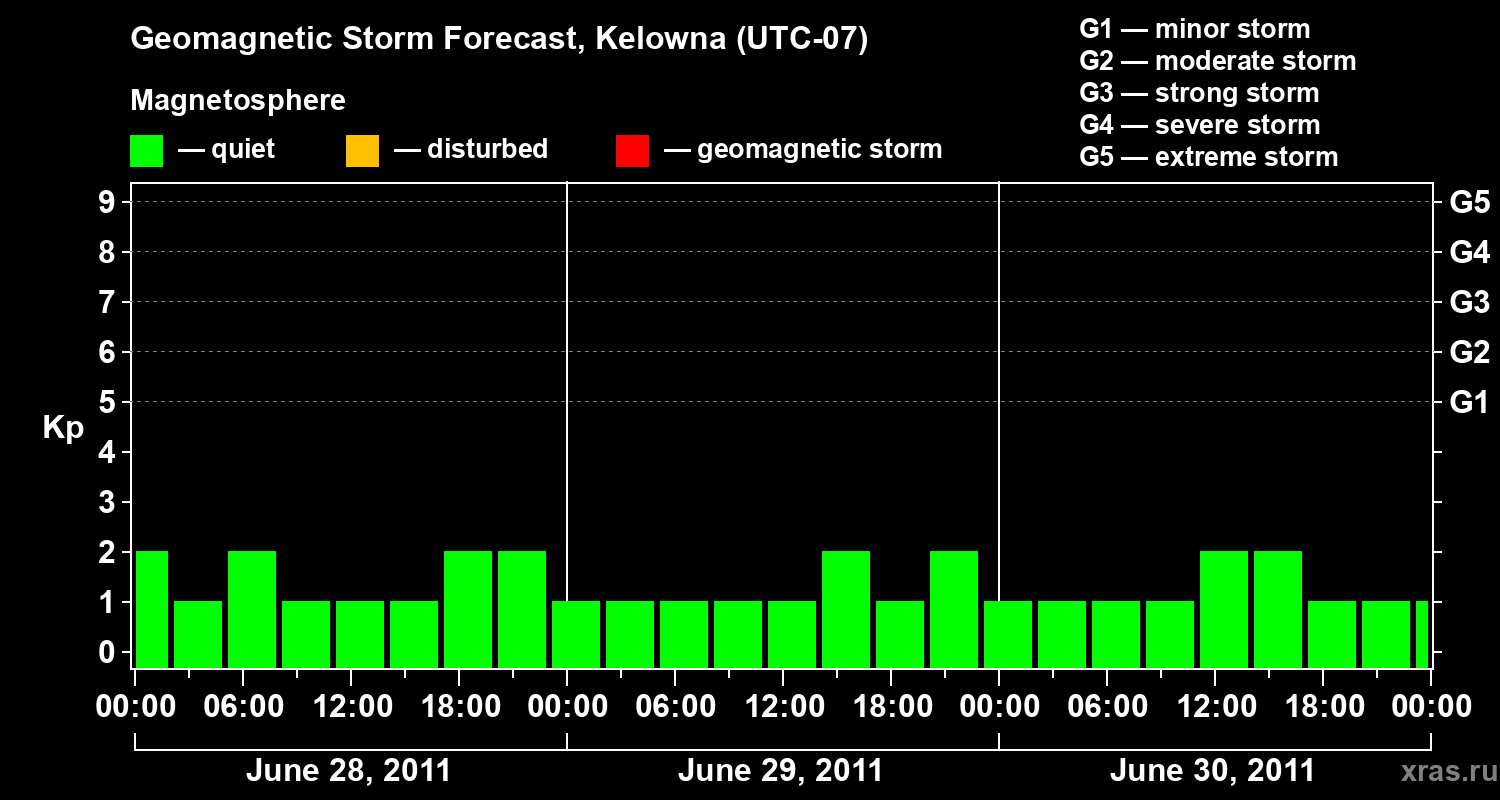 Geomagnetic storm forecast in Kelowna for Jun 28, 2011