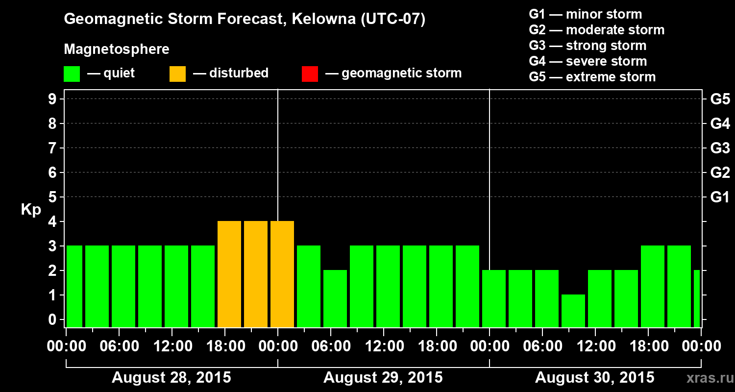 Geomagnetic storm forecast in Kelowna for Aug 28, 2015