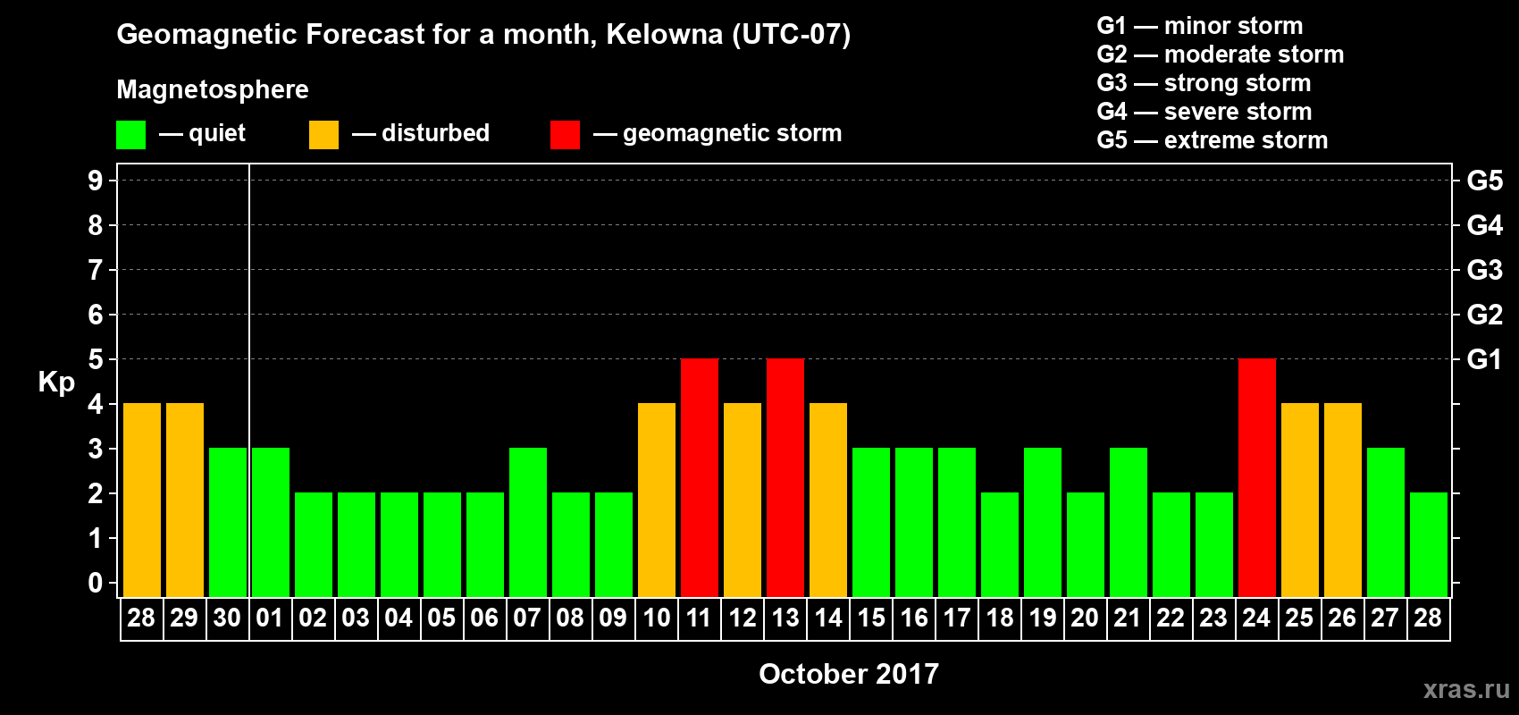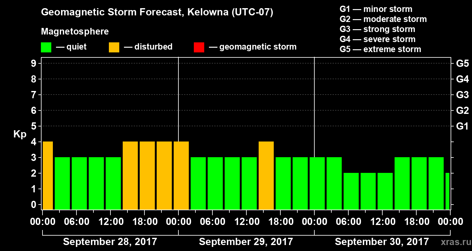 Geomagnetic storm forecast in Kelowna for Sep 28, 2017