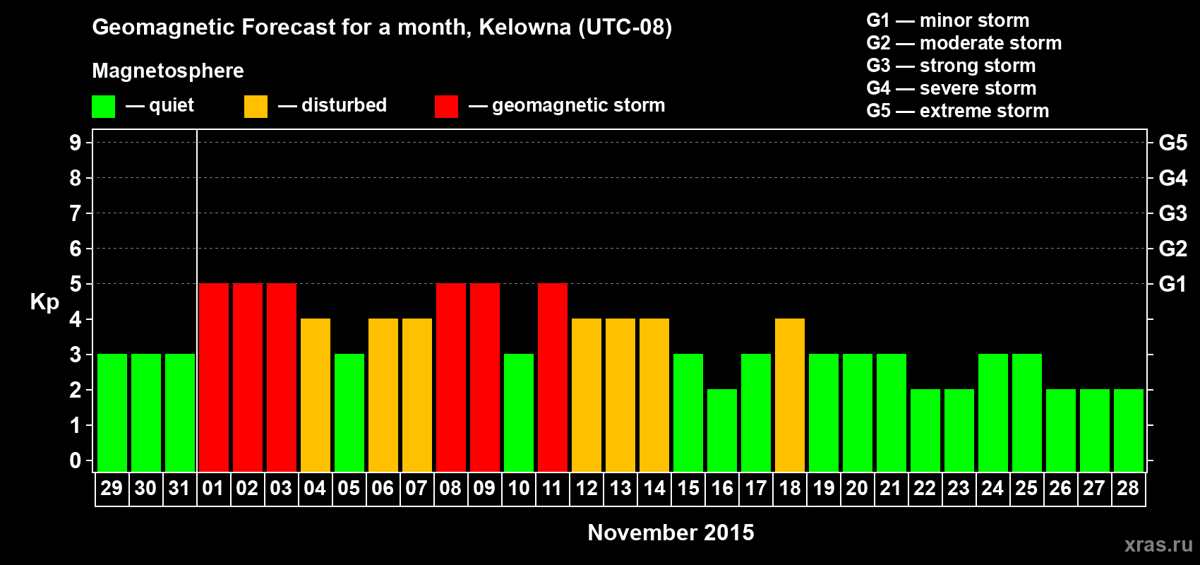 Geomagnetic storm forecast in Kelowna for Oct 29, 2015