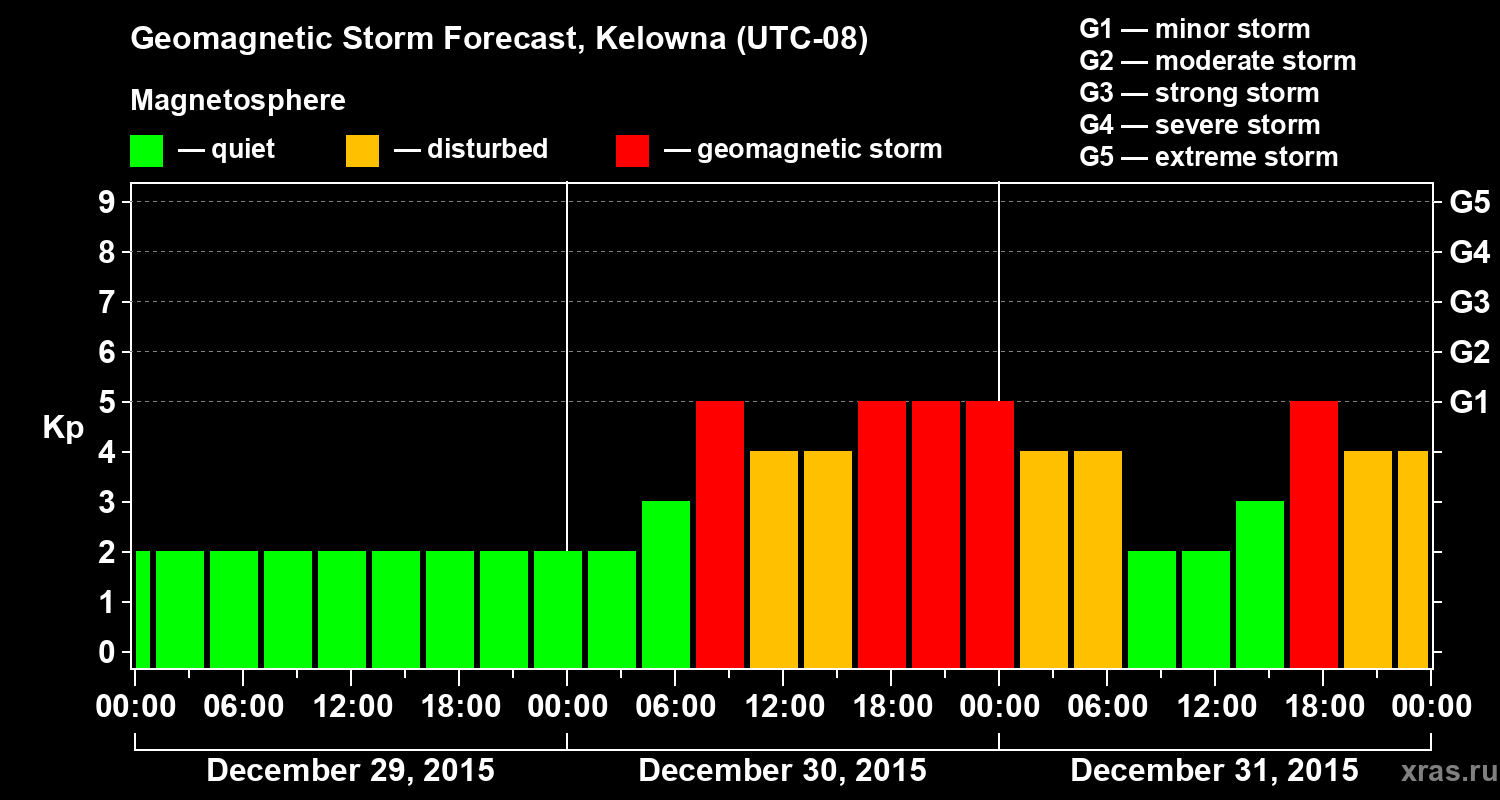 Geomagnetic storm forecast in Kelowna for Dec 29, 2015