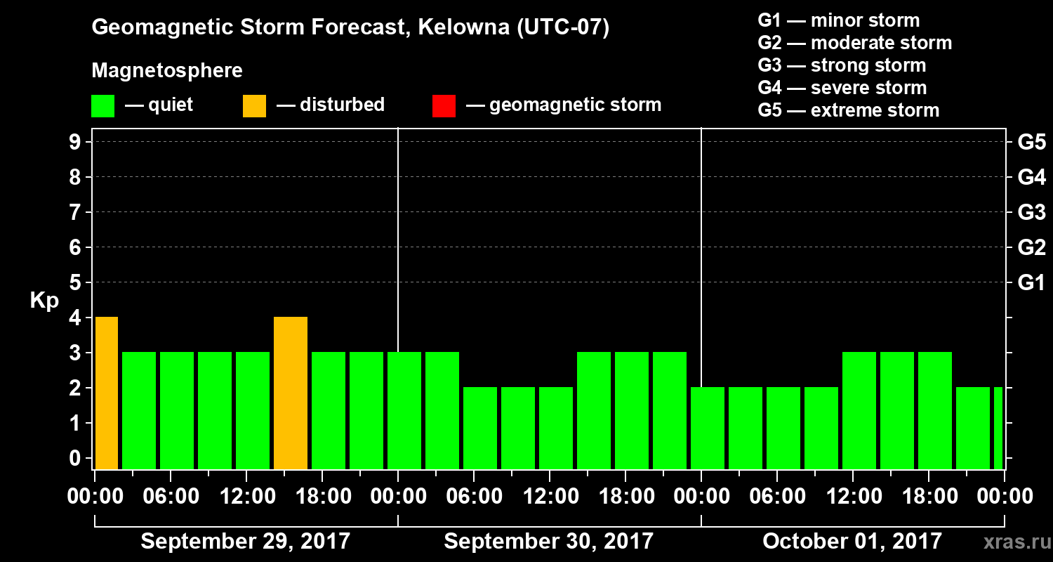 Geomagnetic activity forecast in Kelowna — Sep 29, 2017