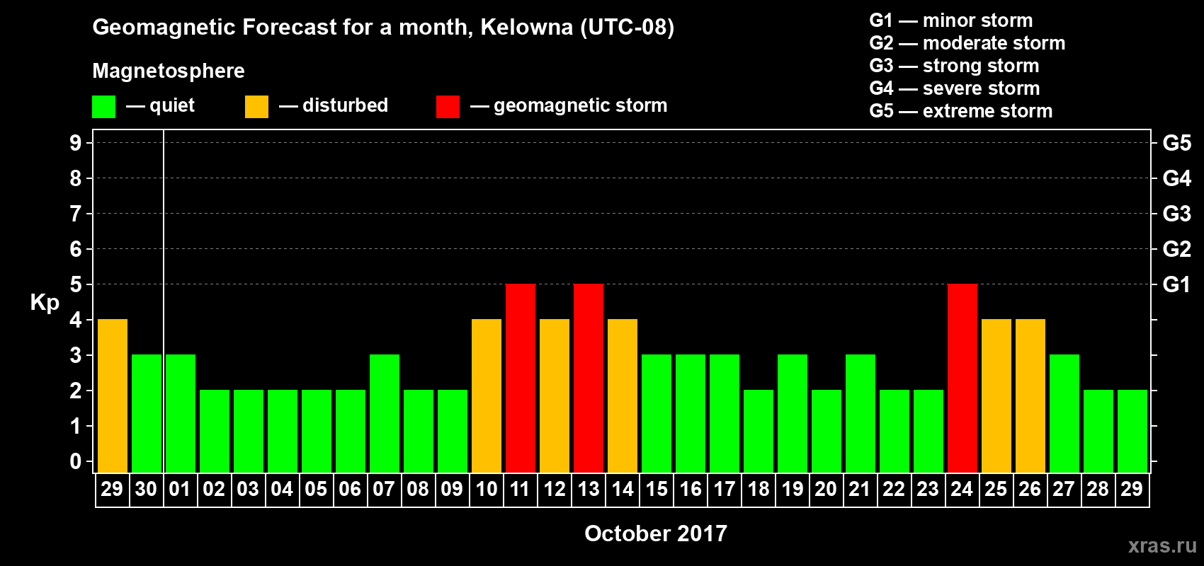Geomagnetic storm forecast in Kelowna for Sep 29, 2017