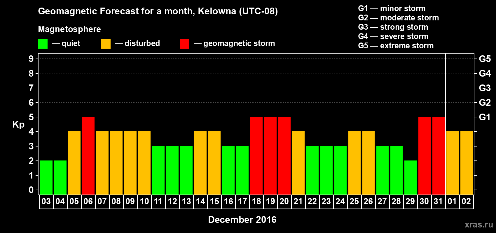 Geomagnetic storm forecast in Kelowna for Dec 03, 2015