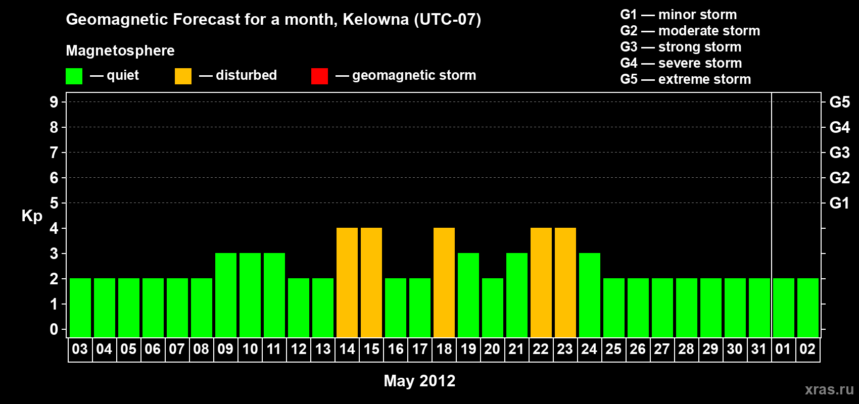 Geomagnetic storm forecast in Kelowna for May 03, 2012