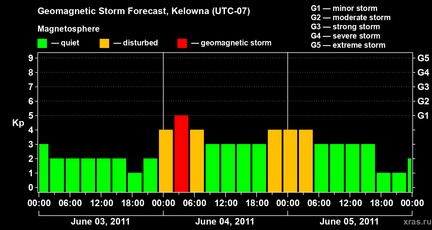 Geomagnetic storm forecast in Kelowna for Jun 03, 2011