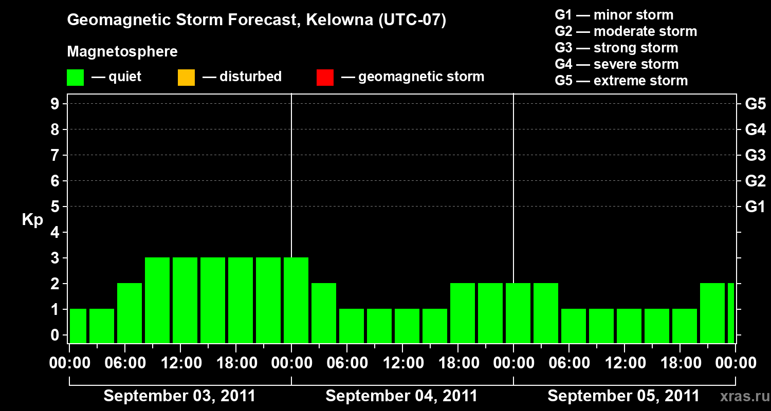 Geomagnetic storm forecast in Kelowna for Sep 03, 2011