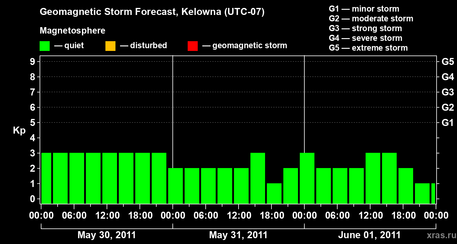 Geomagnetic storm forecast in Kelowna for May 30, 2011