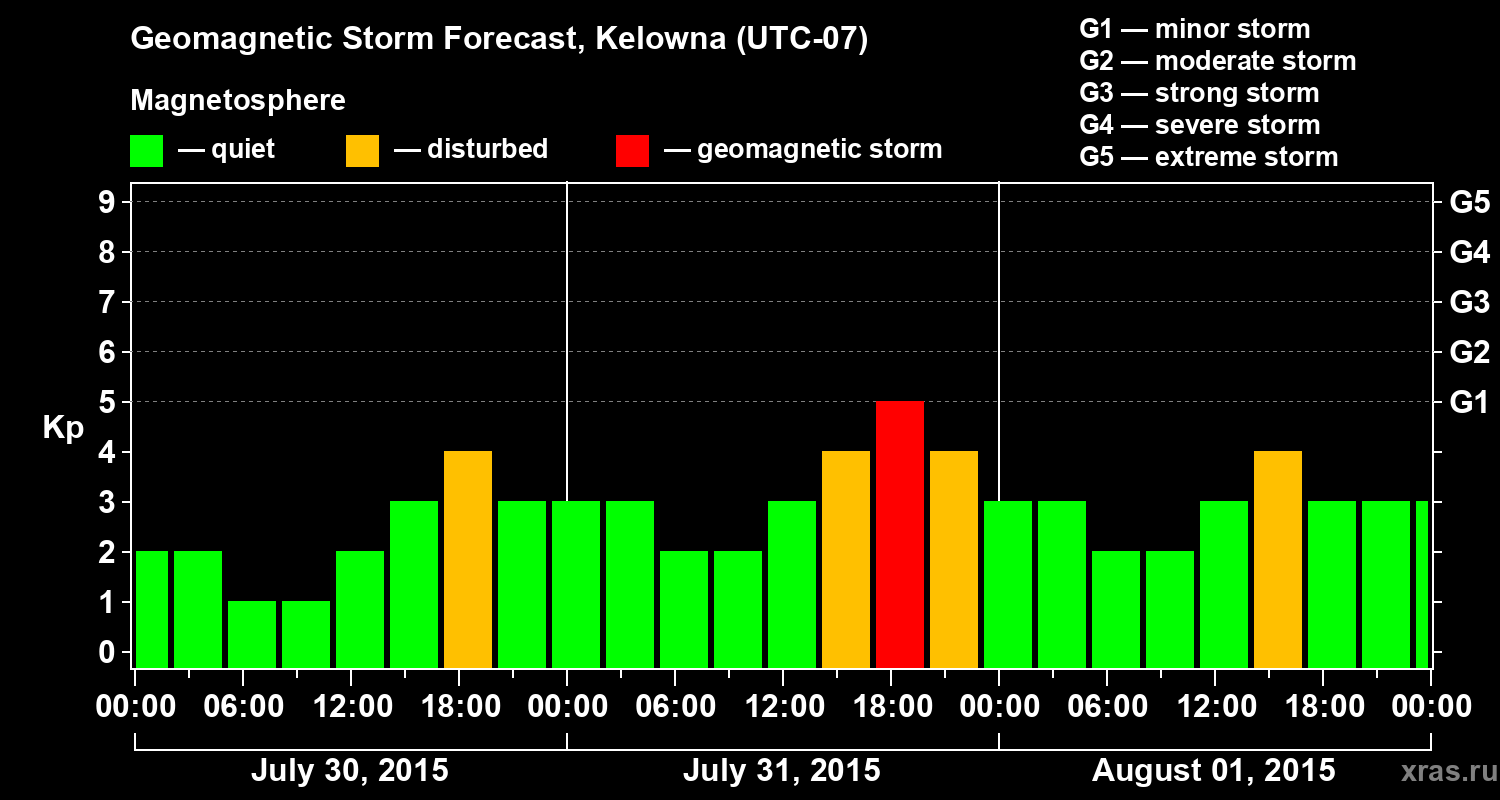 Geomagnetic storm forecast in Kelowna for Jul 30, 2015