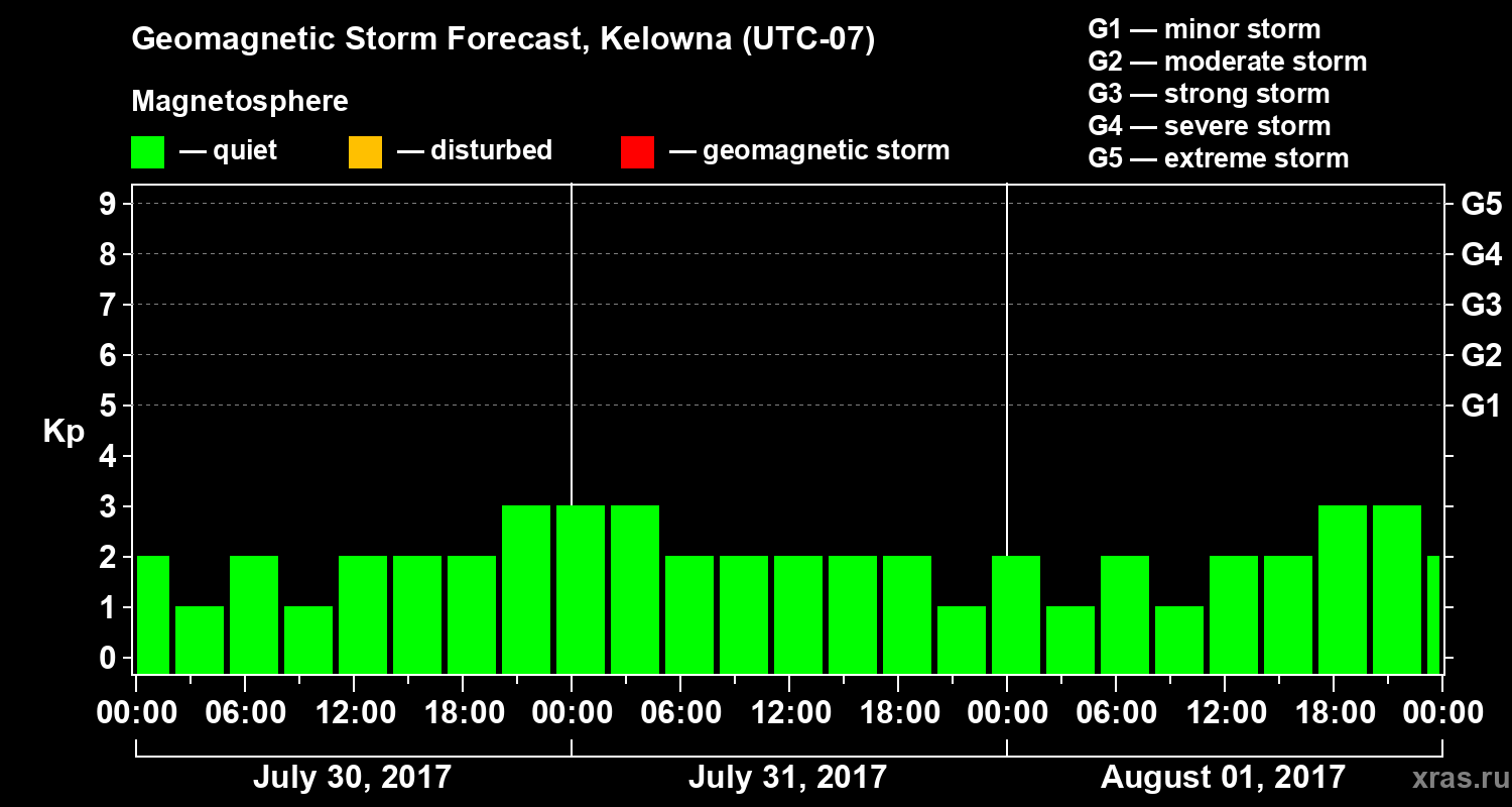 Geomagnetic storm forecast in Kelowna for Jul 30, 2017