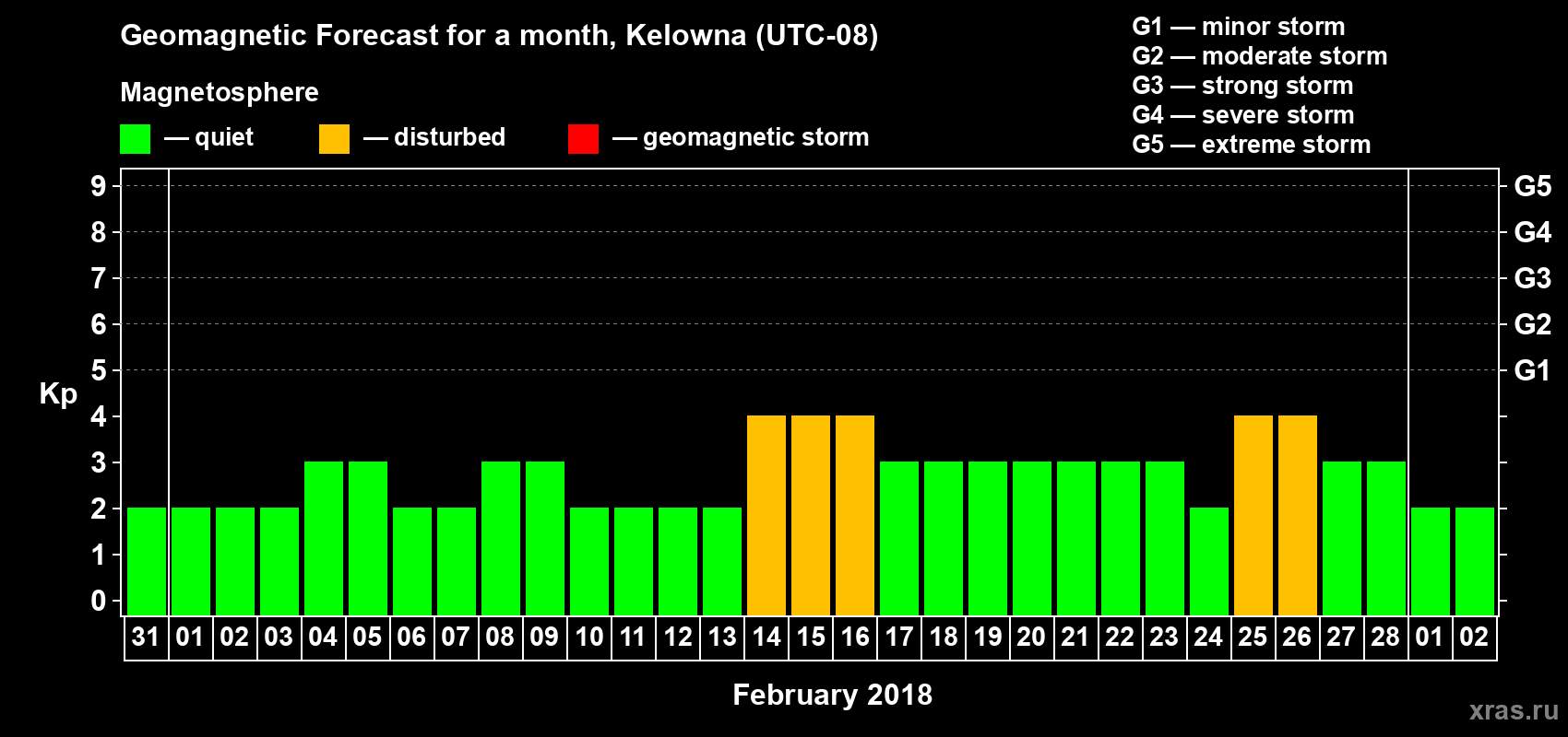 Geomagnetic storm forecast in Kelowna for Jan 31, 2018