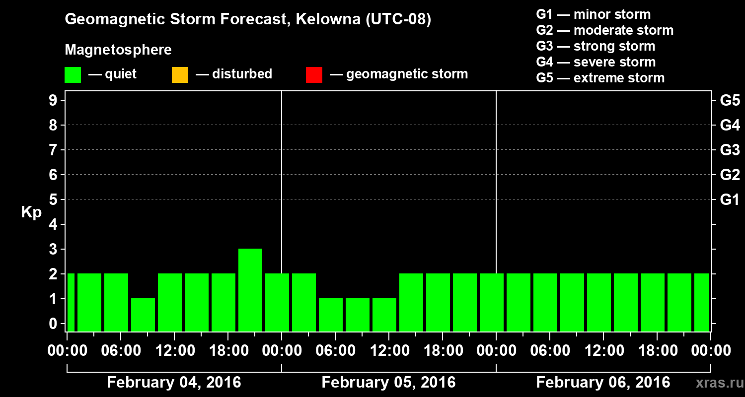 Geomagnetic storm forecast in Kelowna for Feb 04, 2016