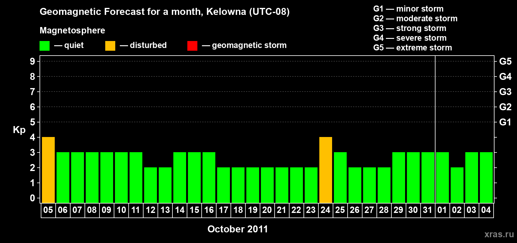 Geomagnetic storm forecast in Kelowna for Oct 05, 2011