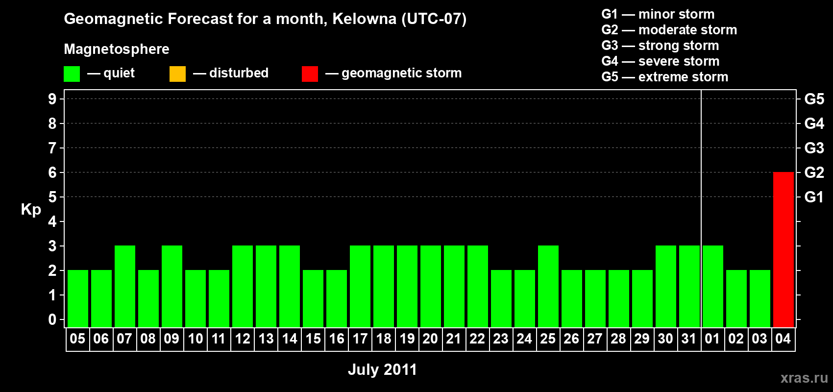 Geomagnetic storm forecast in Kelowna for Jul 05, 2011
