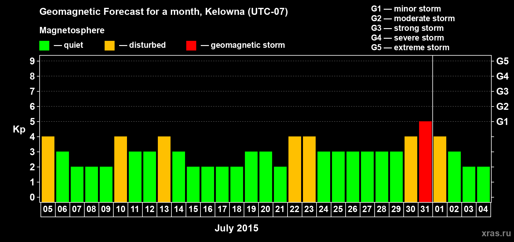 Geomagnetic storm forecast in Kelowna for Jul 05, 2015
