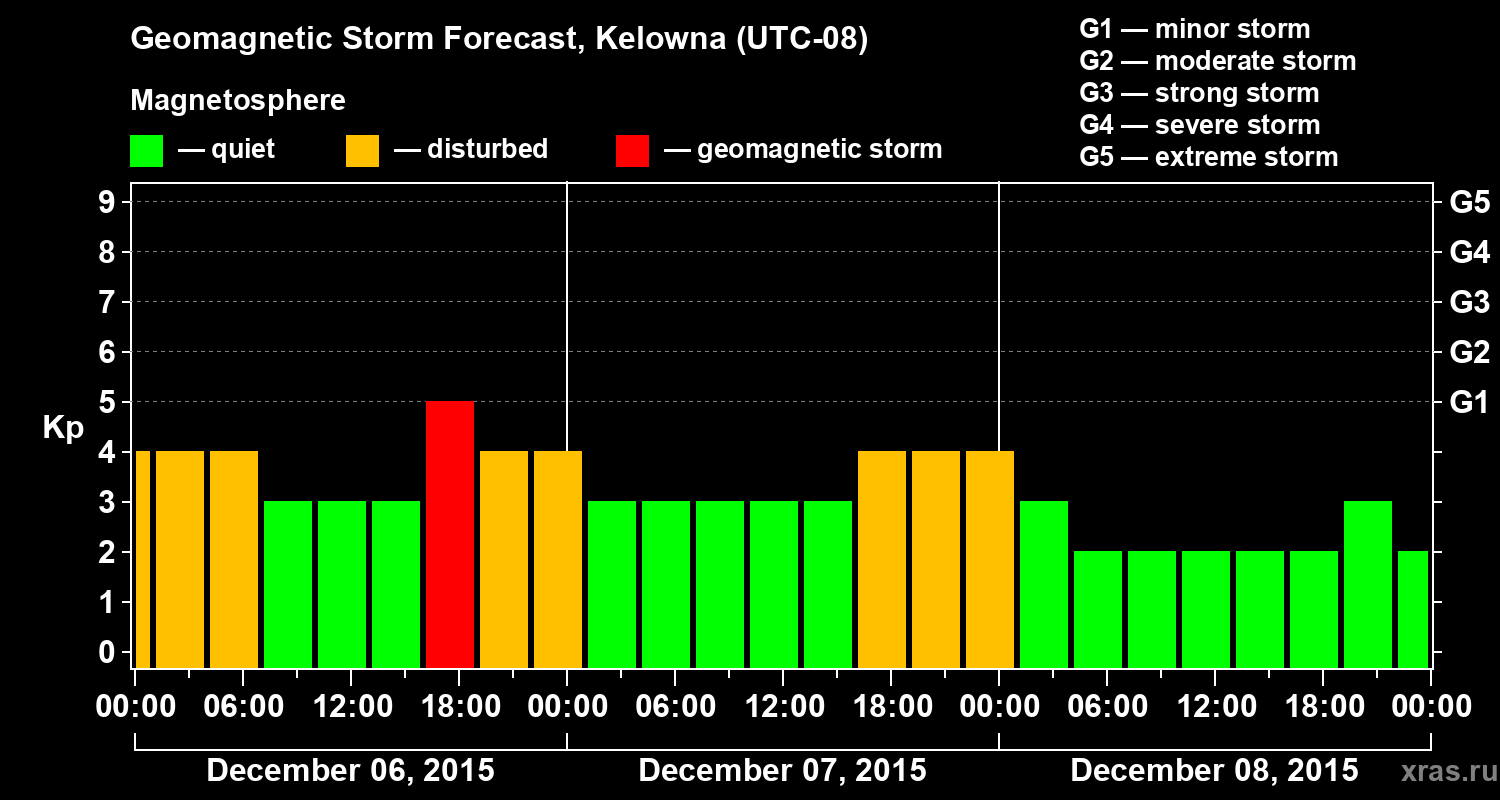 Geomagnetic storm forecast in Kelowna for Dec 06, 2015