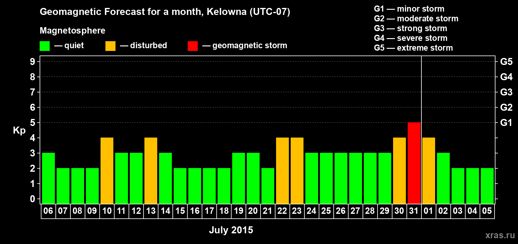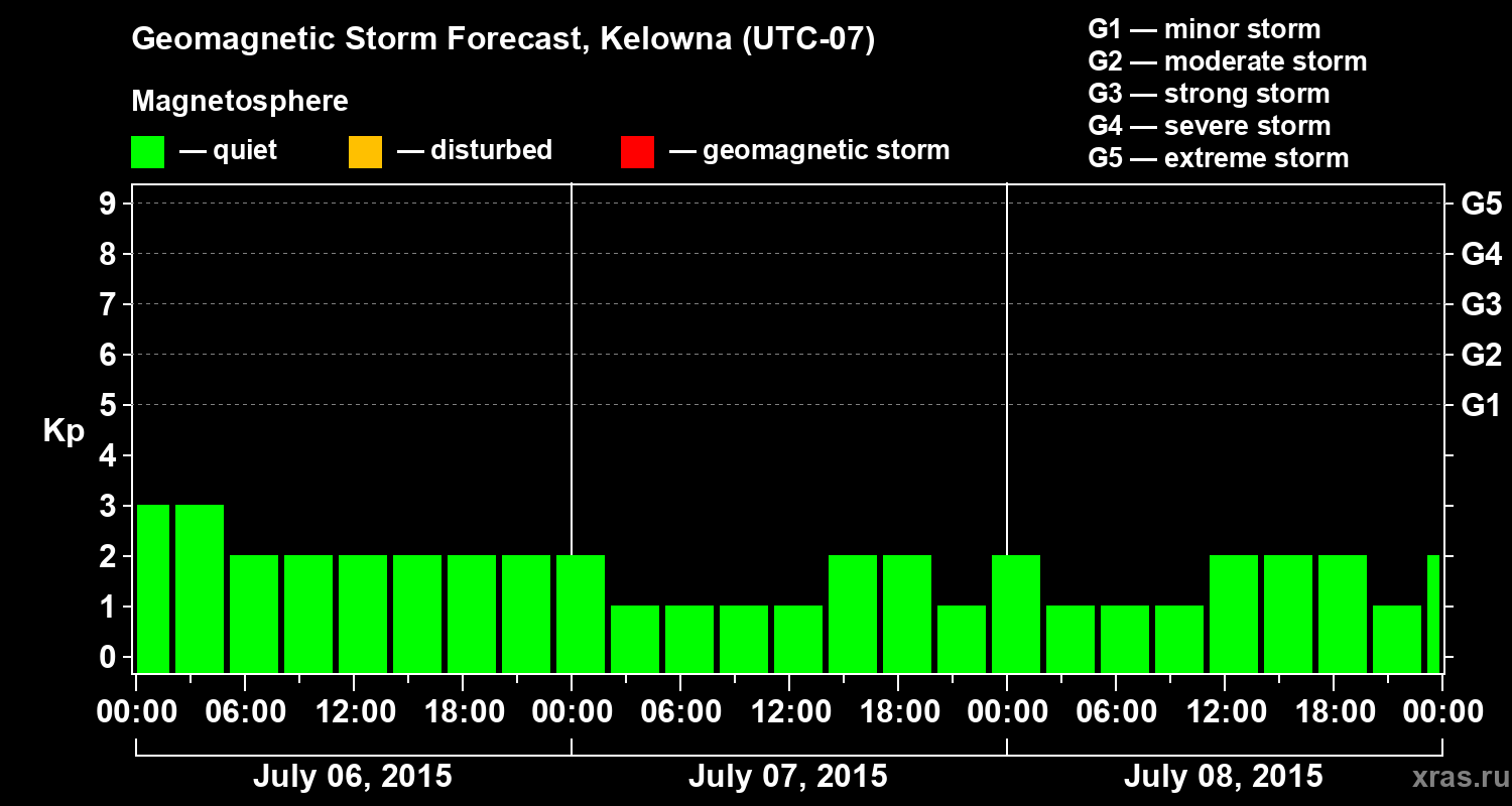 Geomagnetic storm forecast in Kelowna for Jul 06, 2015