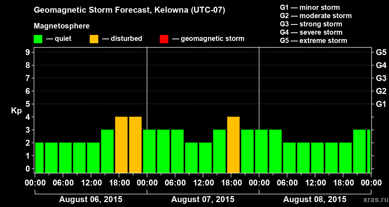 Geomagnetic storm forecast in Kelowna for Aug 06, 2015