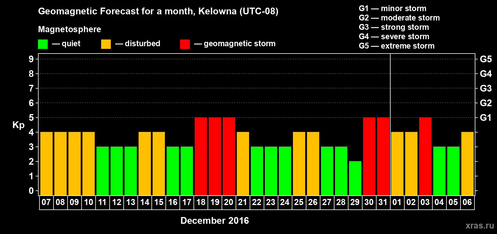 Geomagnetic storm forecast in Kelowna for Dec 07, 2015