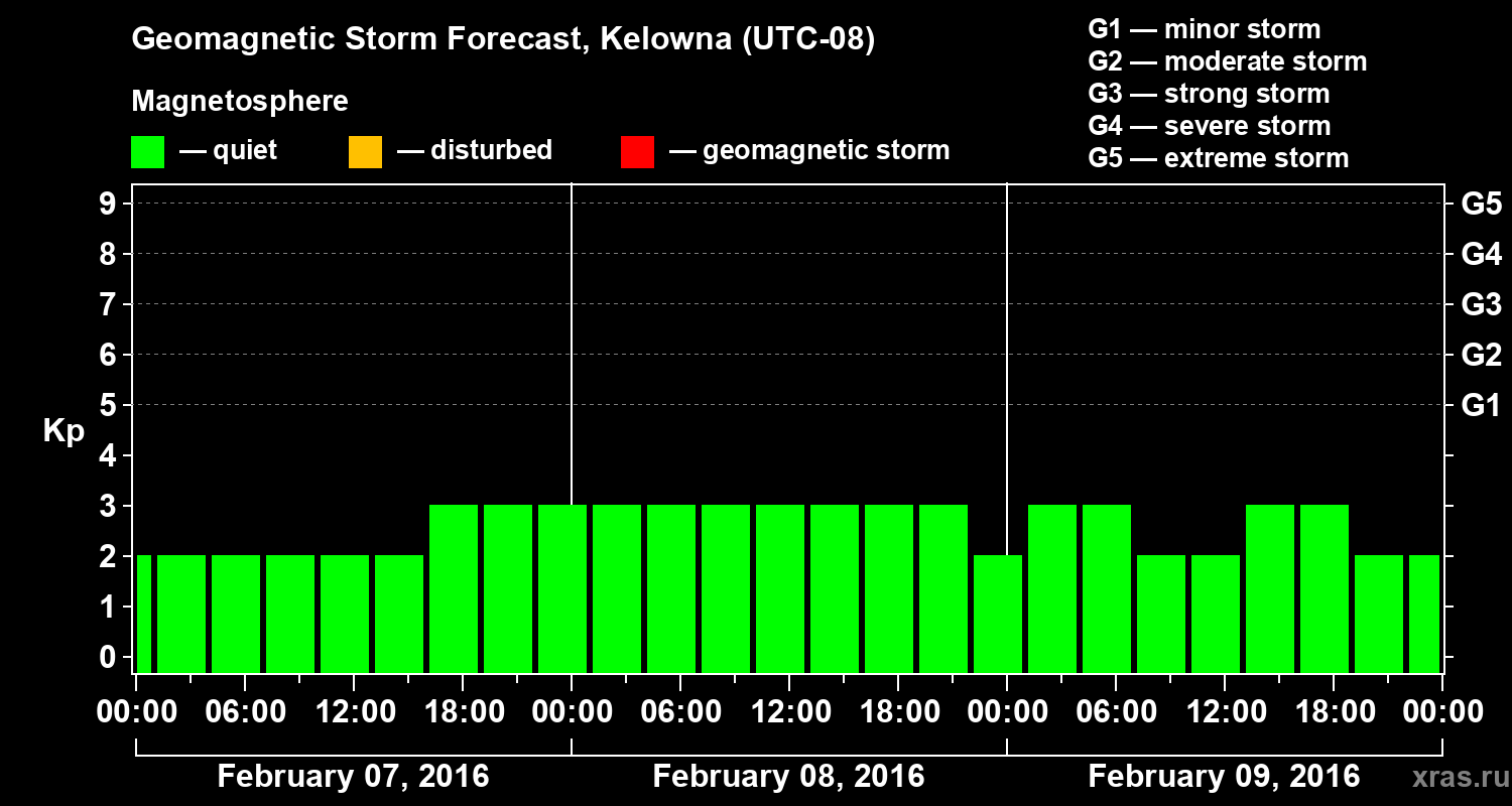 Geomagnetic storm forecast in Kelowna for Feb 07, 2016