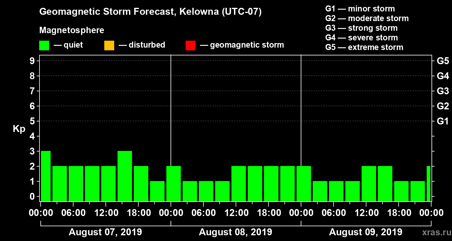 Geomagnetic storm forecast in Kelowna for Aug 07, 2019