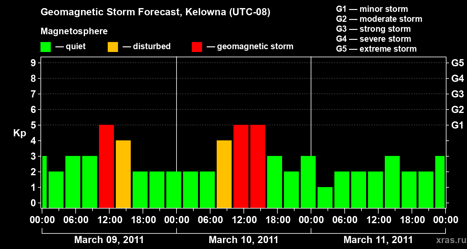 Geomagnetic storm forecast in Kelowna for Mar 09, 2011