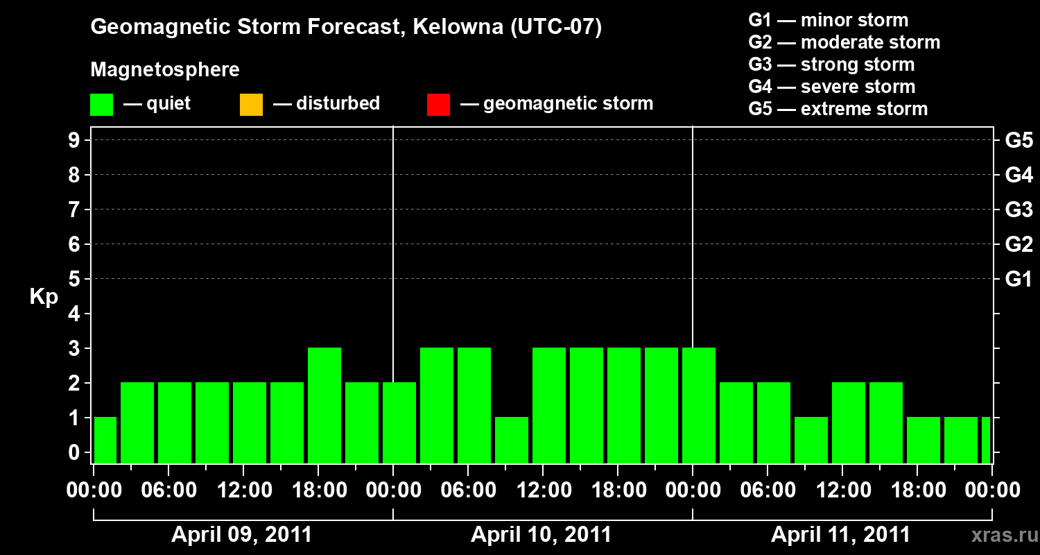 Geomagnetic storm forecast in Kelowna for Apr 09, 2011