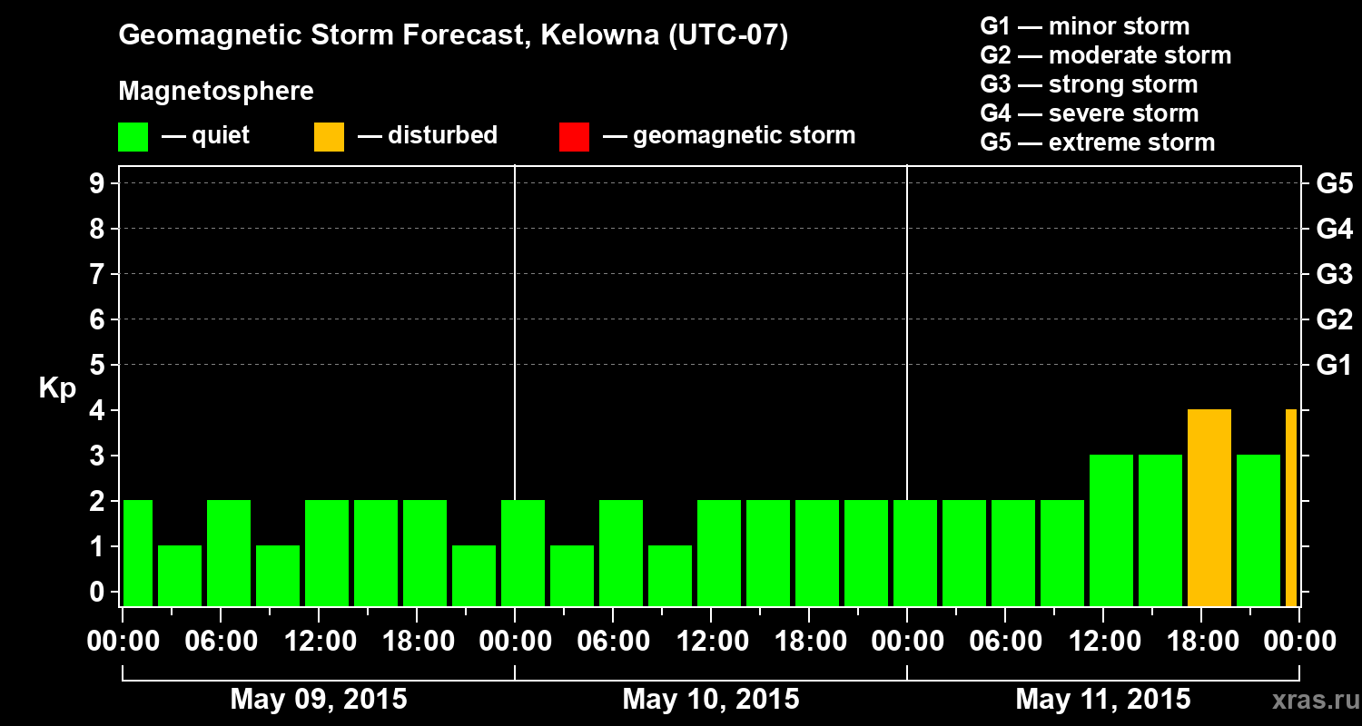 Geomagnetic storm forecast in Kelowna for May 09, 2015