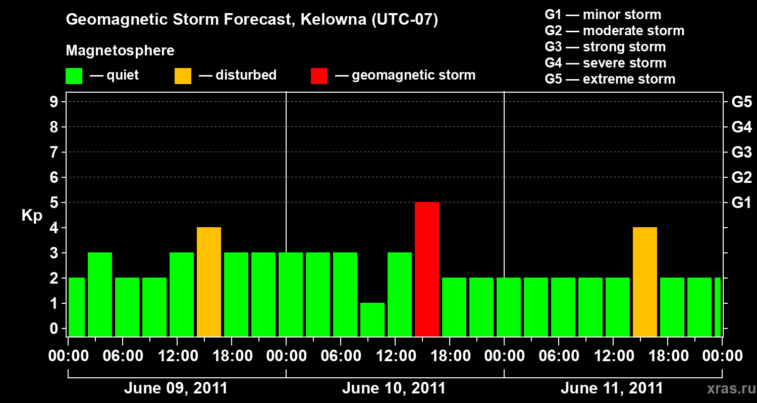 Geomagnetic storm forecast in Kelowna for Jun 09, 2011