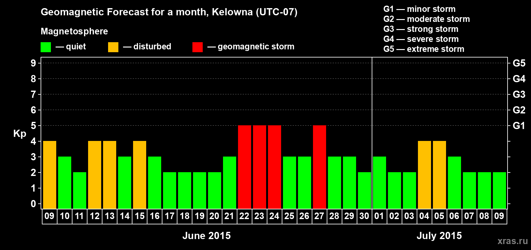 Geomagnetic storm forecast in Kelowna for Jun 09, 2015
