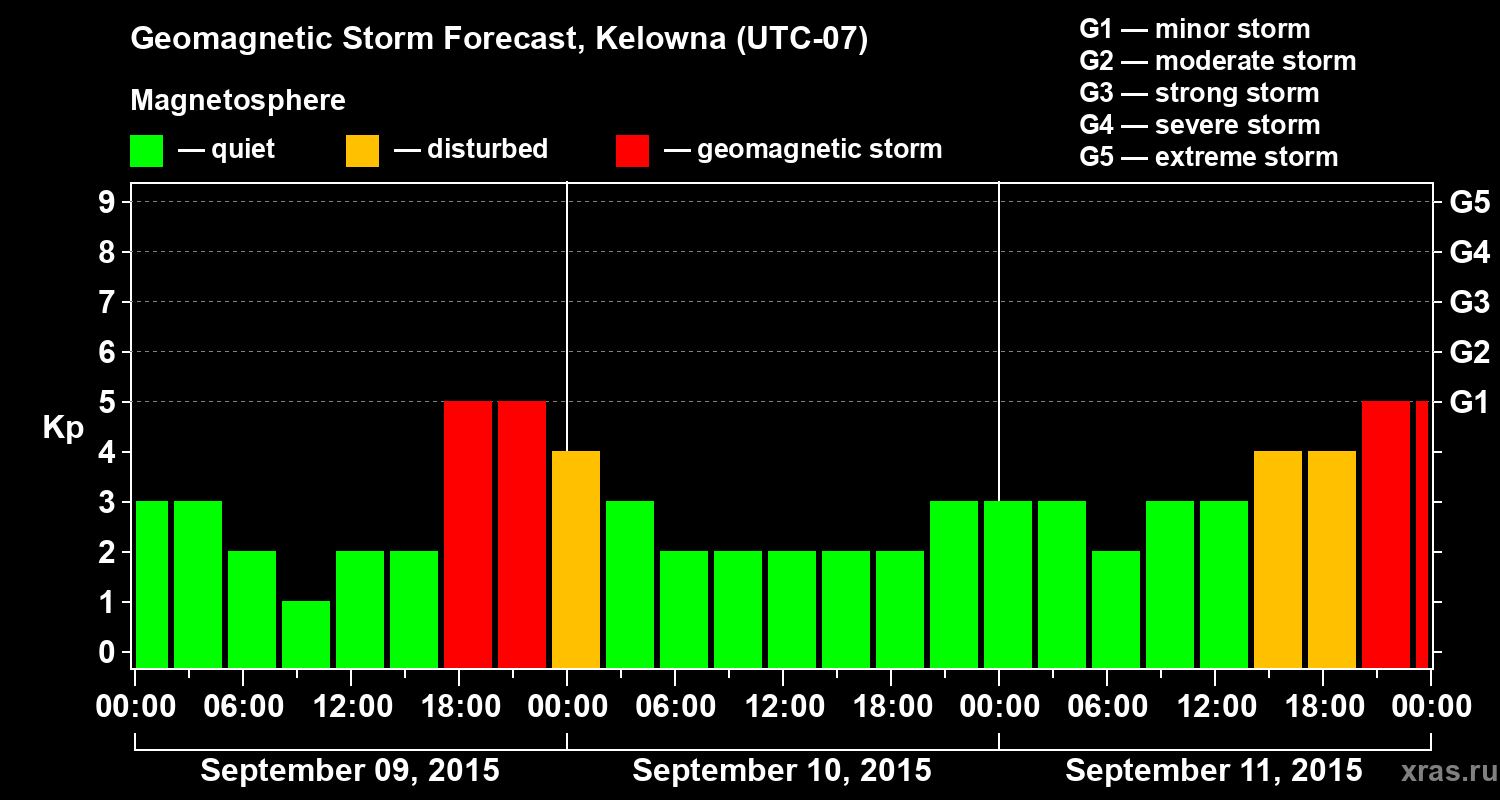 Geomagnetic storm forecast in Kelowna for Sep 09, 2015