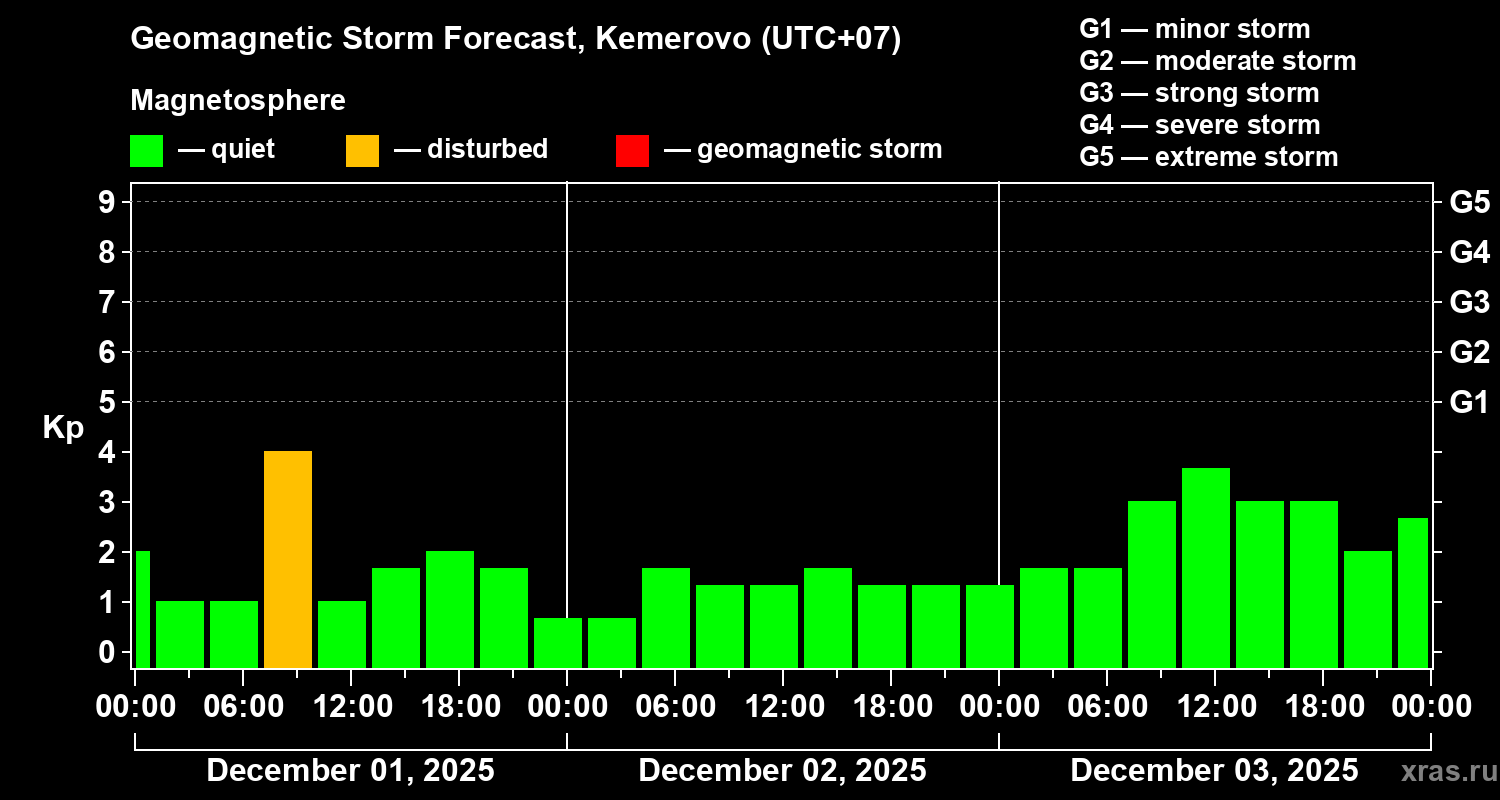 Geomagnetic storm forecast in Kemerovo for Dec 01, 2025