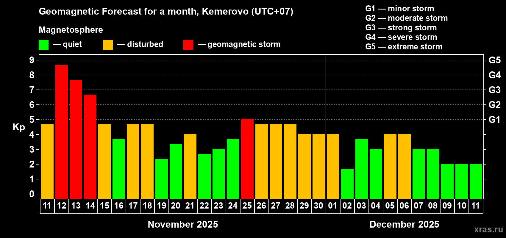 Geomagnetic storm forecast in Kemerovo for Nov 11, 2025